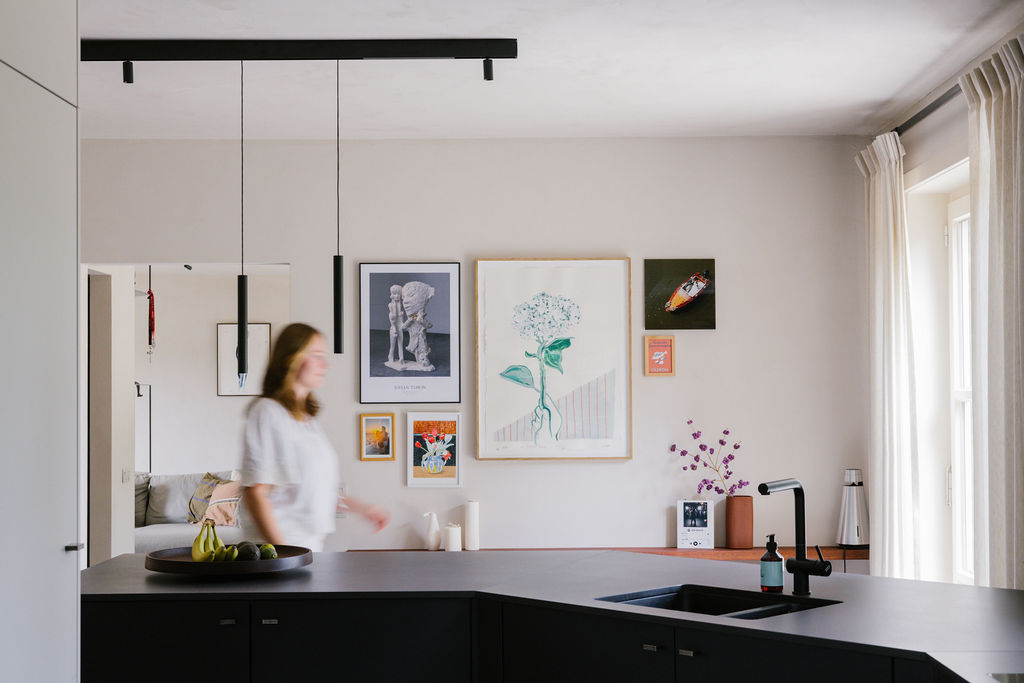 Het resultaat is een strakke, ruime en neutrale keuken met zachte, warme tinten en veel karakter. Marjolein: 'De basis is rustig en neutraal, maar met enkele toffe accenten en authentieke details om het gezellig te maken.' De speciaal ontworpen hoek in de keuken zorgt voor extra plaats én een uitnodigende zitplek. Daar zitten ze vaak recepten te lezen terwijl de ander aan het koken is. Ook vrienden schuiven er graag mee aan met een glas wijn.