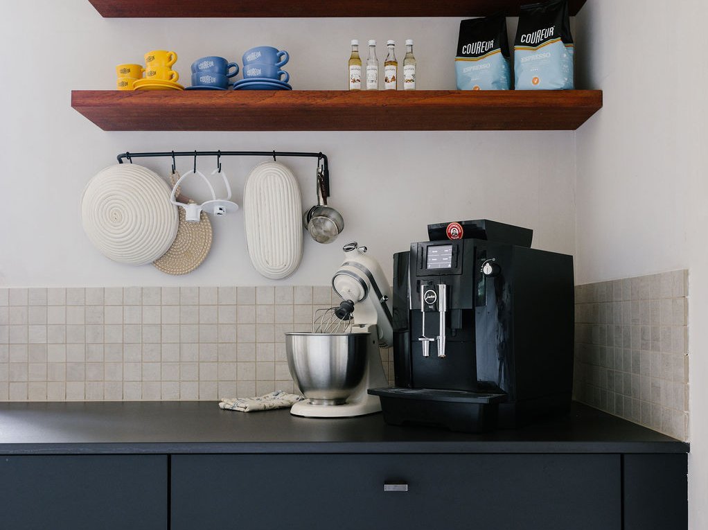 Als koffiebrander in een familiebedrijf van vier generaties, heeft koffie bij Nicolas altijd prioriteit. 'Ik wissel regelmatig van machine en wou een plek waar ik verschillende toestellen kan aansluiten. Dankzij de juiste stopcontacten en een kraantje voor water lukt dat perfect.'