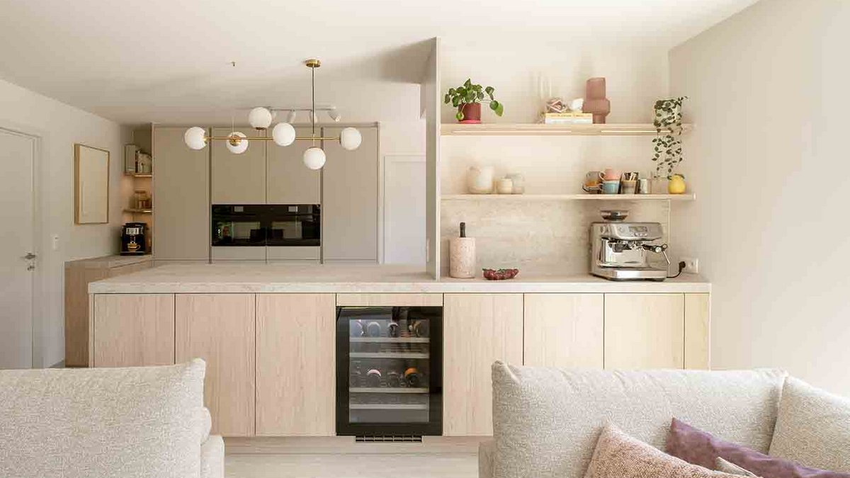 Tim: “Durf een keukenrenovatie ruimer te zien dan enkel de keukenkasten. Beschouw de keuken als een doorlopend geheel in de woning en pak meteen ook de leefruimte aan met bijpassende inbouwkasten.”