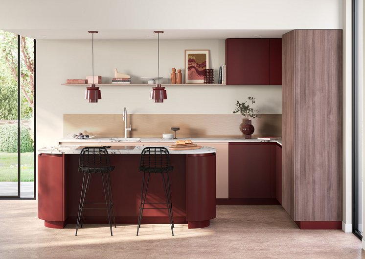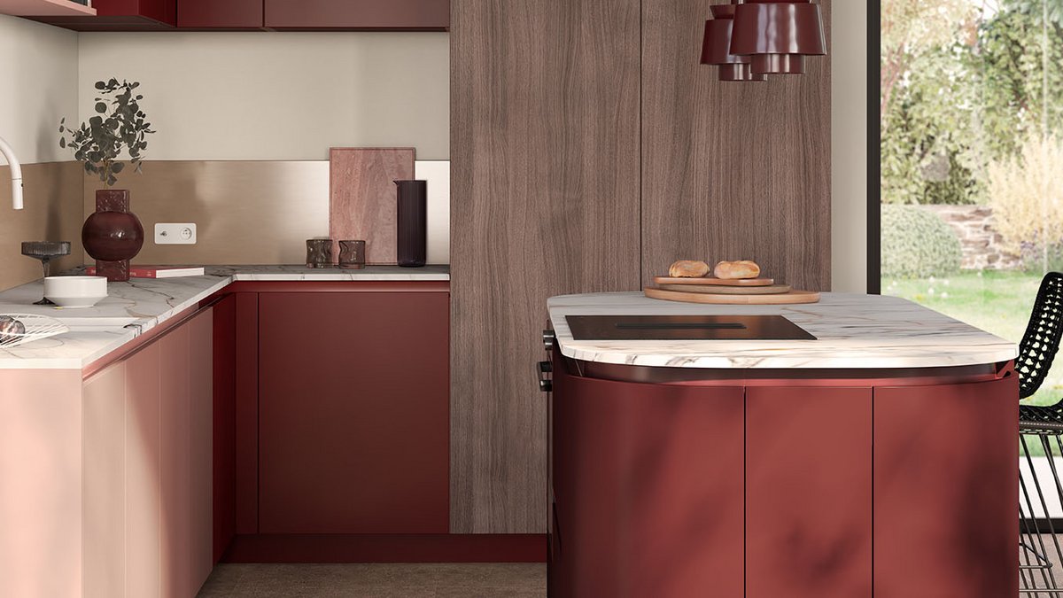 Mono Rosa se distingue par une palette rose chaleureuse et nuancée. Une cuisine qui combine caractère, élégance et convivialité, renforcée par l’association de matériaux comme le bois foncé et des accents métalliques cuivrés. Une cuisine pensée pour celles et ceux qui veulent affirmer une personnalité, tout en conservant une vraie élégance.