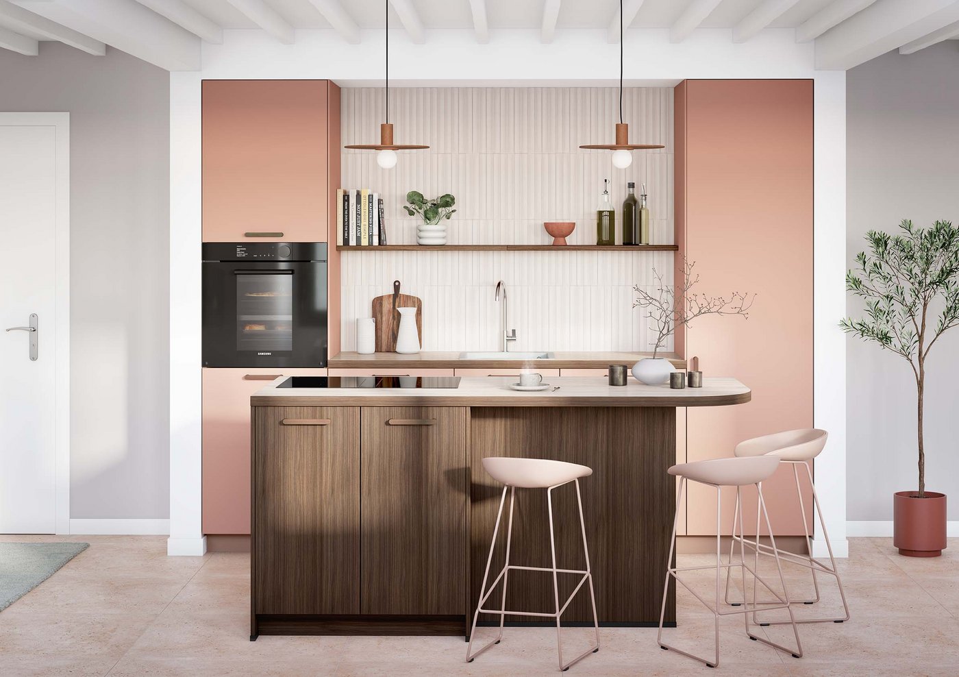 Jouer sur les nuances sable, pastel ou naturelles permet de relier facilement la cuisine aux autres pièces du logement tout en restant dans un registre intemporel.