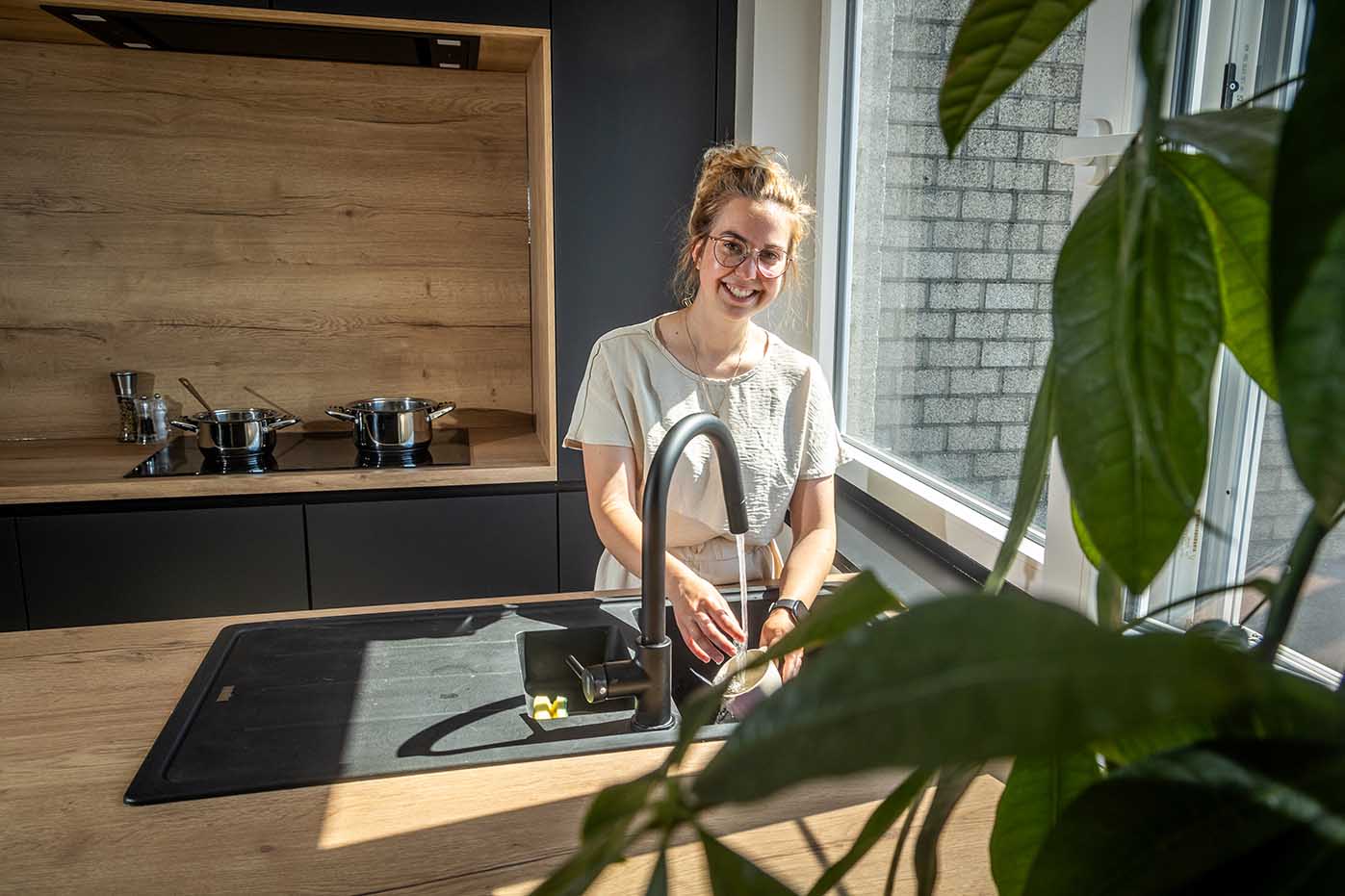 Anaïs nous ouvre les portes de sa nouvelle cuisine. Elle voulait une cuisine noire avec un îlot. Vanden Borre Kitchen a réussi le pari d’intégrer tout cela dans un petit espace. Rencontre.