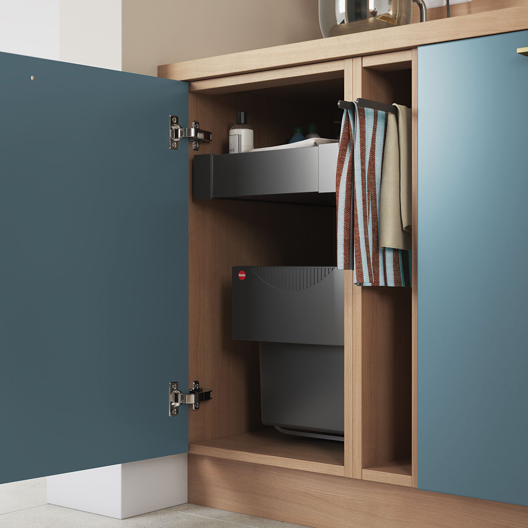 Ce meuble pratique et discret combine un porte-serviettes, un système de tri des déchets, un tiroir et un fond de protection contre l’humidité. Un espace fonctionnel qui facilite votre quotidien.