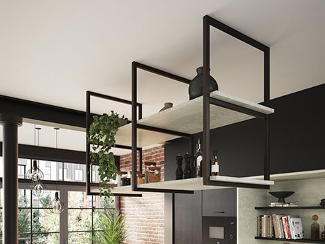 Créez de l’espace de rangement supplémentaire avec des étagères décoratives au look industriel.