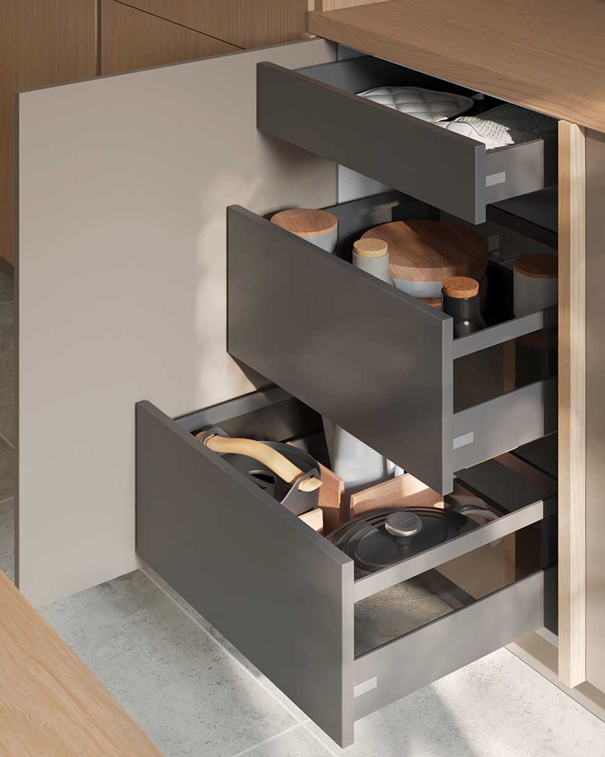 Dans votre cuisine, vous êtes le seul maître à bord. C’est vous qui imaginez vos espaces de rangements comme et où bon vous semble. C’est aussi ça le confort du sur mesure.