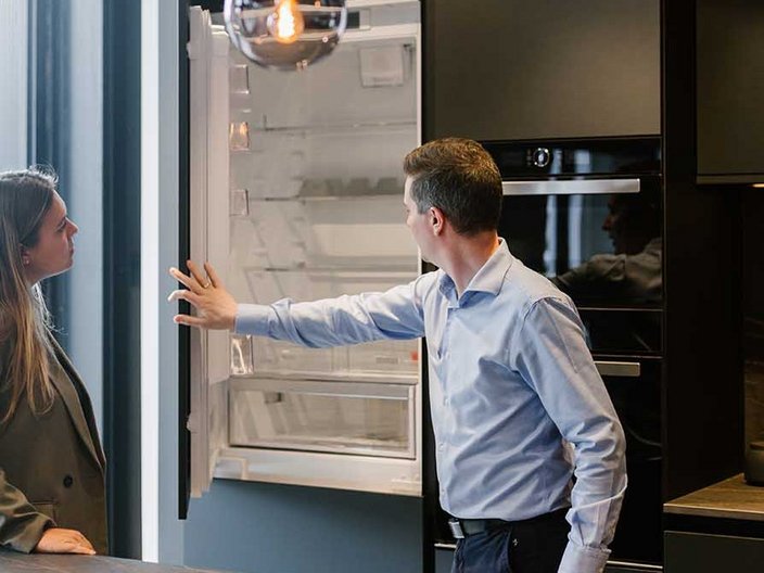 Le réfrigérateur encastrable s’intègre parfaitement dans votre cuisine et assure une continuité esthétique avec les façades de vos meubles.