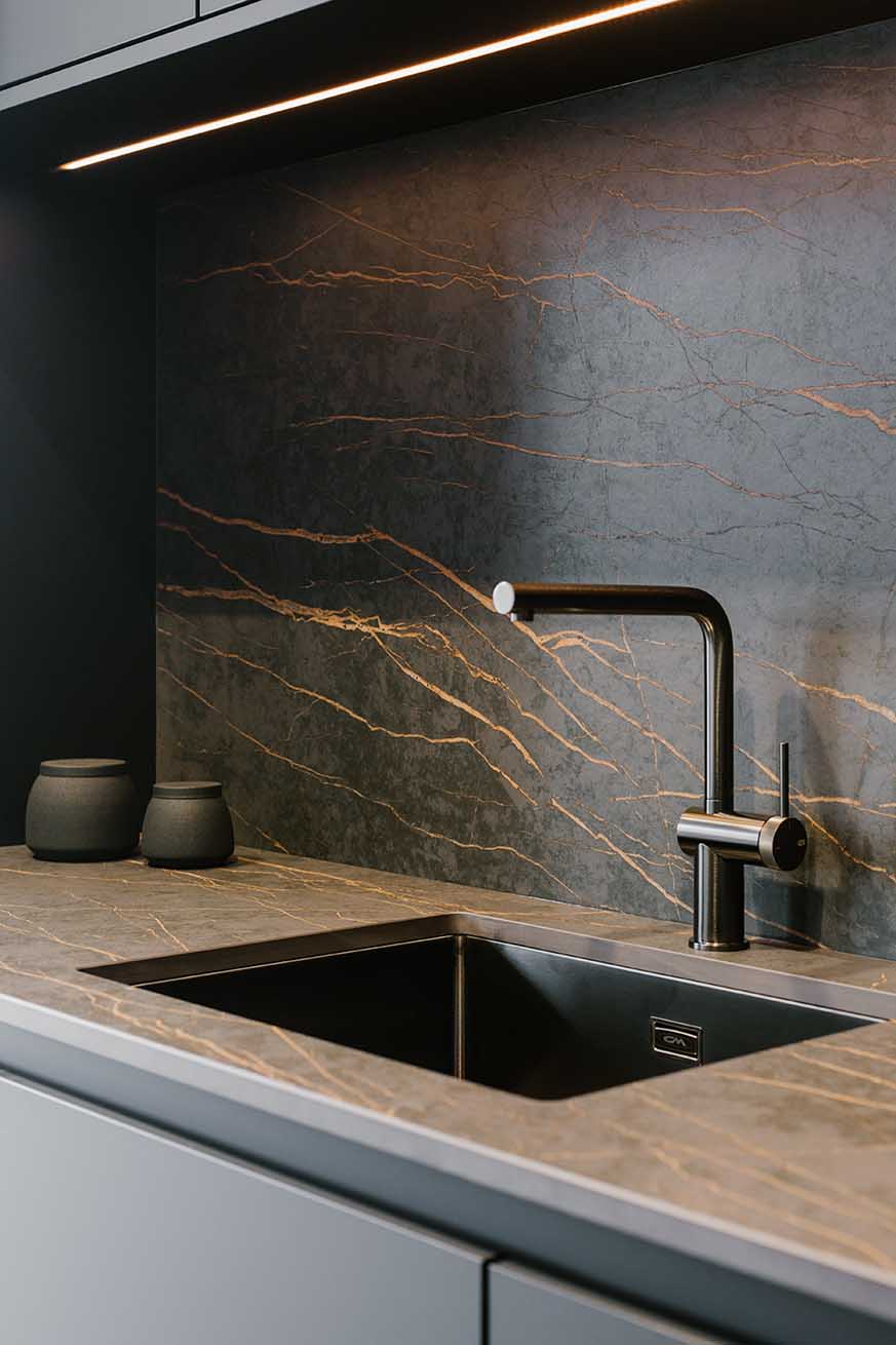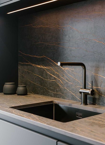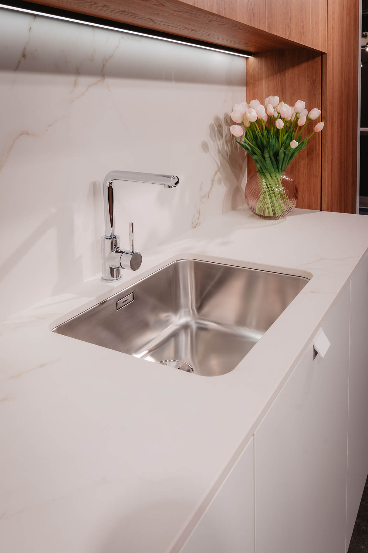 Très résistant à la chaleur, aux chocs et aux rayures, il se décline dans plusieurs coloris pour s’accorder au plan de travail. Facile d’entretien, il séduit par son toucher doux et son aspect mat.