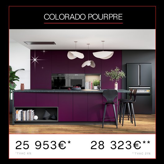 * Les prix indiqués sont des prix de vente maximum conseillés, chaque magasin franchisé étant libre de fixer ses prix. Les prix indiqués incluent la cotisation Recupel. Ils sont indiqués en euros TVAC, et aux Conditions Sur Ensemble (CSE). Les CSE correspondent à un avantage permanent consenti par le fabricant pour la commande d’une composition complète selon une configuration type (ou à un niveau de prix équivalent à celle-ci) par rapport au montant total des prix unitaires qui serait payable en cas d’achat séparé des éléments. Cet avantage résulte notamment de l’optimisation de la production et des économies d’échelle. TVA 6%, taux applicable (hors électroménager) si votre habitation a plus de 10 ans et que la pose est faite par votre magasin Vanden Borre Kitchen vendeur (voir conditions en magasin).
