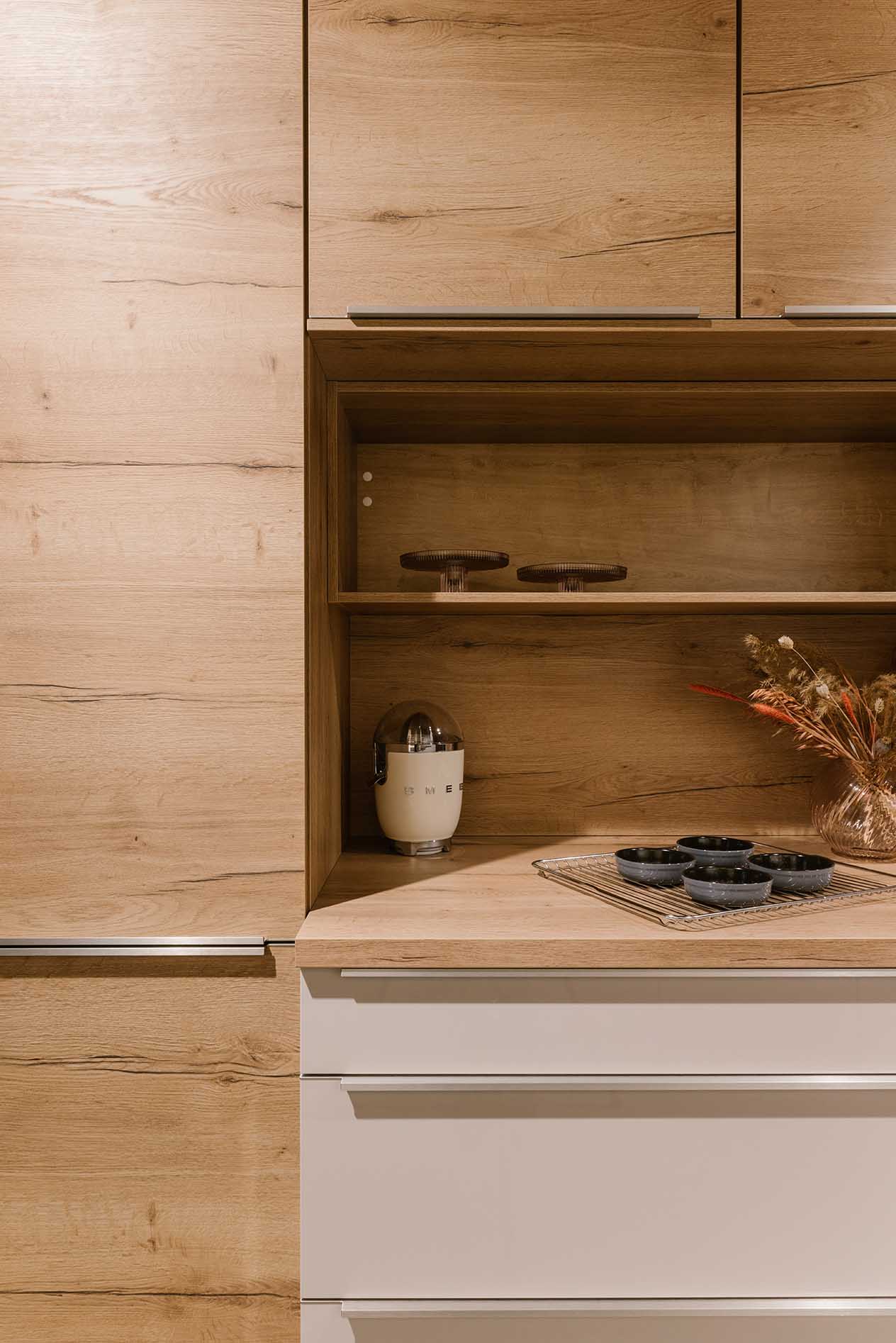 Geef extra klasse aan uw keuken met onze ruime keuze aan hout: eik, notenhout, beuk, kastanjelaar, drijfhout … Er zijn meer dan 220 afwerkingen van hout en met houtstructuur beschikbaar.