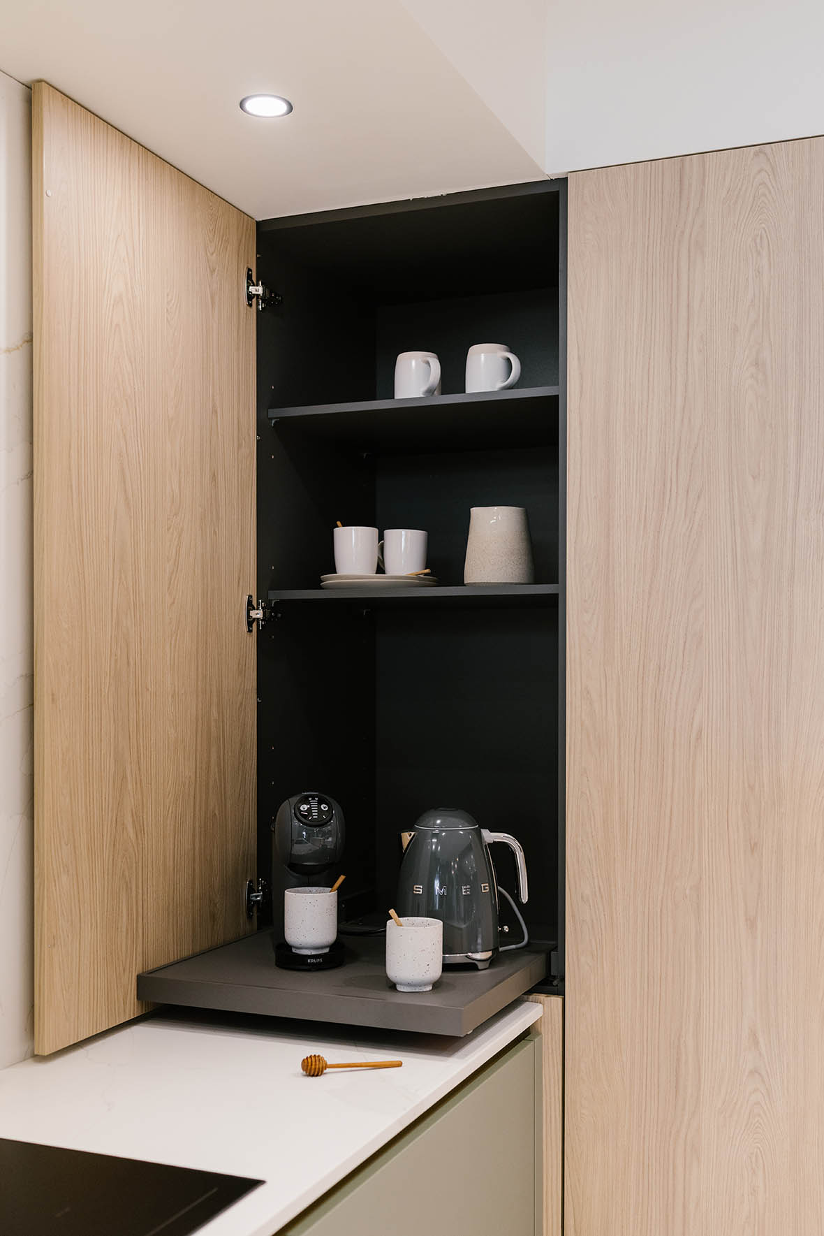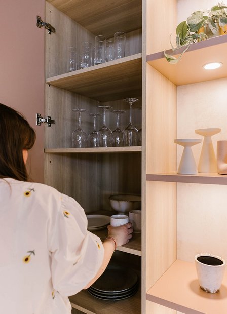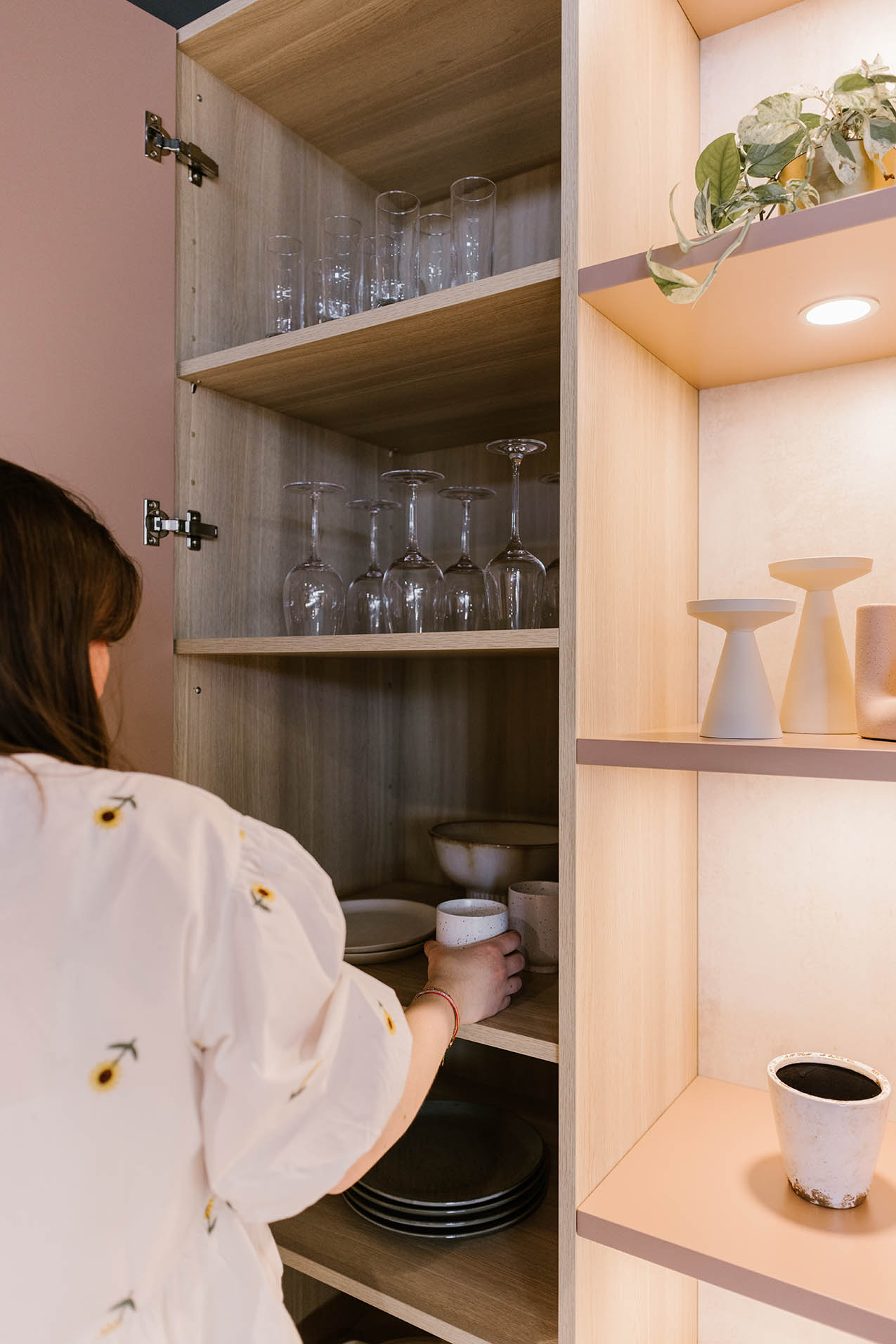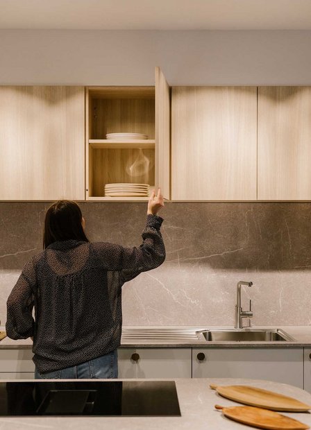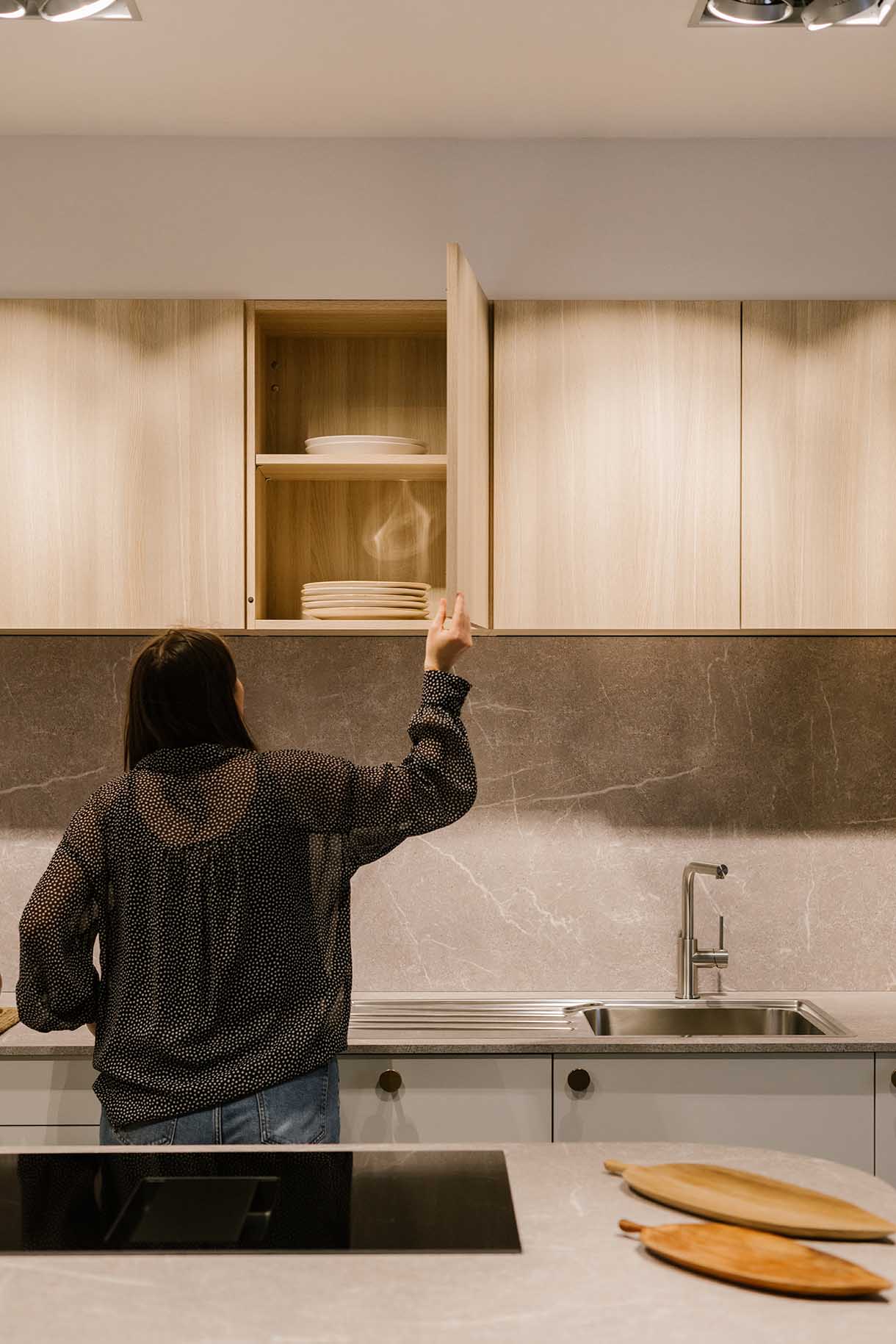 De kleur bepaalt de sfeer van uw keuken. Door ons zowat oneindige palet kan u de precieze tint voor uw fronten kiezen, maar kan u ook de binnenkant van uw meubels erop afstemmen voor een onberispelijke afwerking.