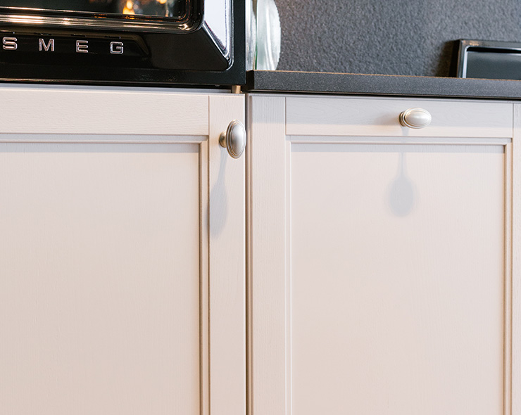 Onze handgrepen, van modern minimalistisch tot klassiek, zijn met zorg gemaakt om de esthetiek van uw keuken aan te vullen en u tegelijk een praktische toegang tot uw opbergruimtes te bieden. Afhankelijk van de fronten en de opstelling van uw keuken zal uw Kitchen Expert de ideale handgreep voor uw project bepalen op basis van de vorm, de grootte, de kleur en het materiaal.