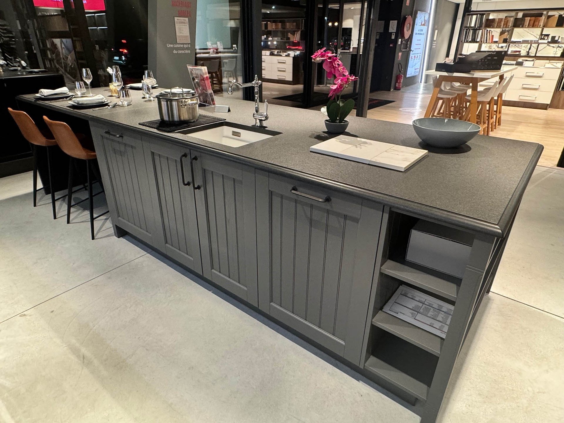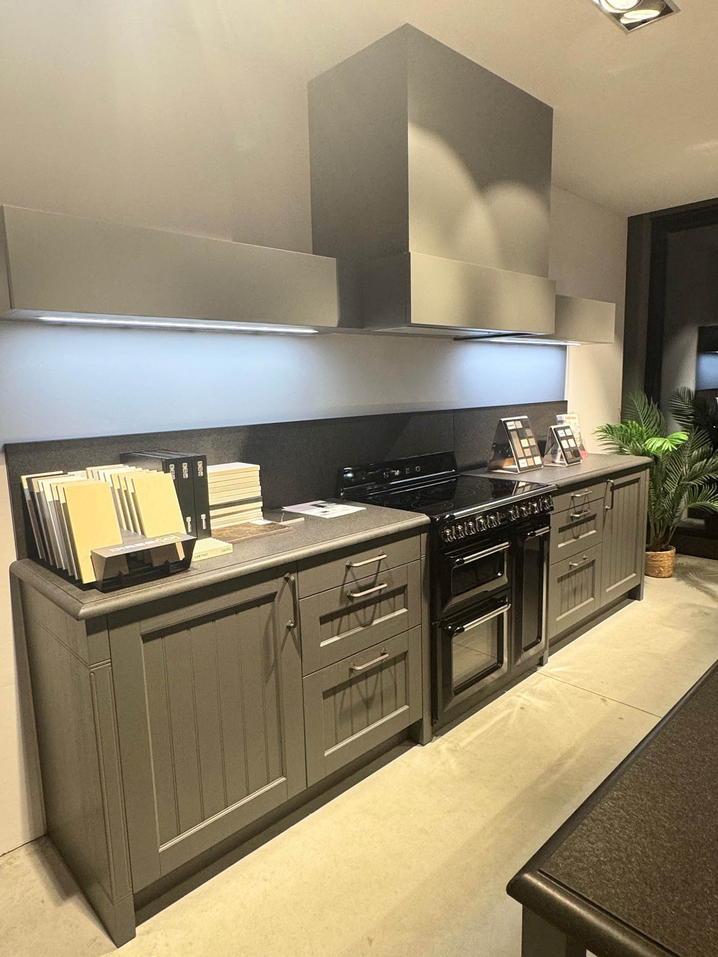 Afmeting keuken: 3m85 x 3mFronten: Finca HoutWerkblad: GranitElektrotoestellen: Smeg + SamsungSanitair: BlancoService: incl. 21% BTW, levering en plaatsing niet inbegrepen