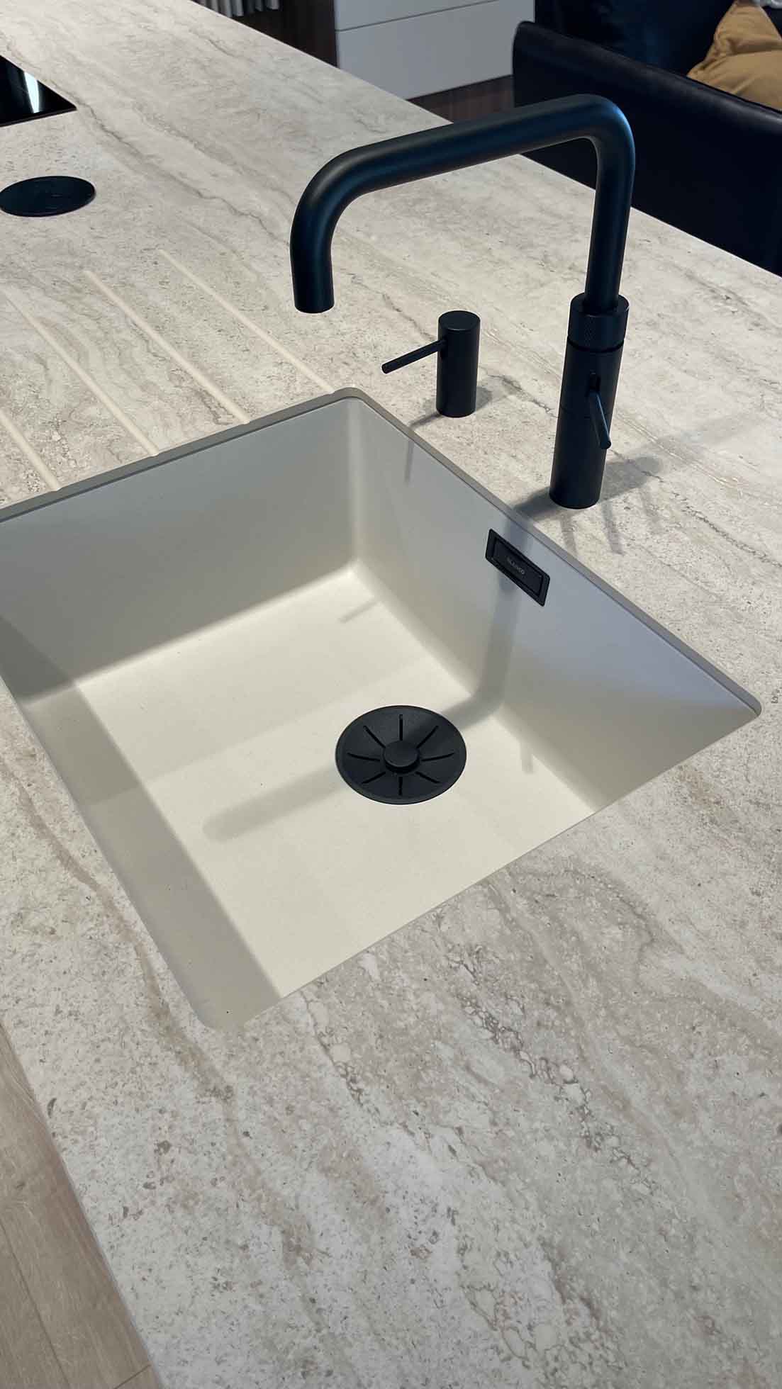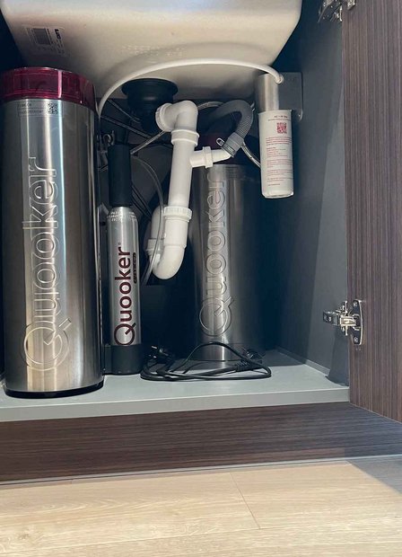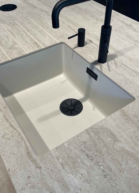 Sanitair: Spoelbak: BLANCO 527170, Kraan: QUOOKER FNSBLK + Cube