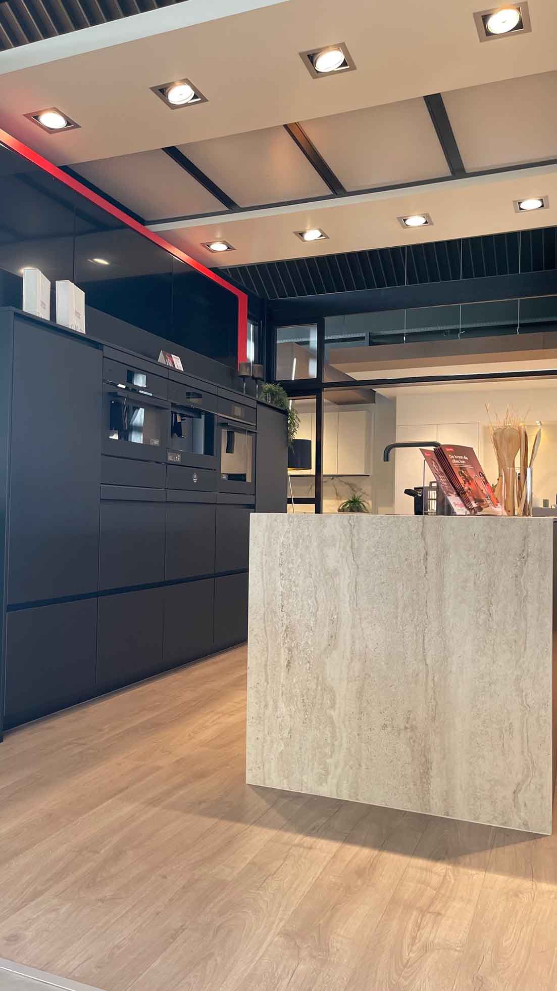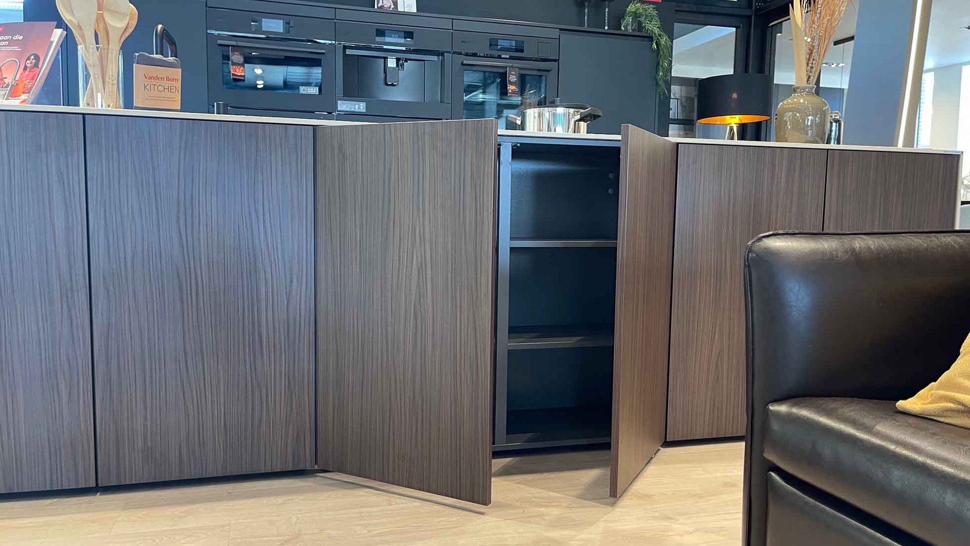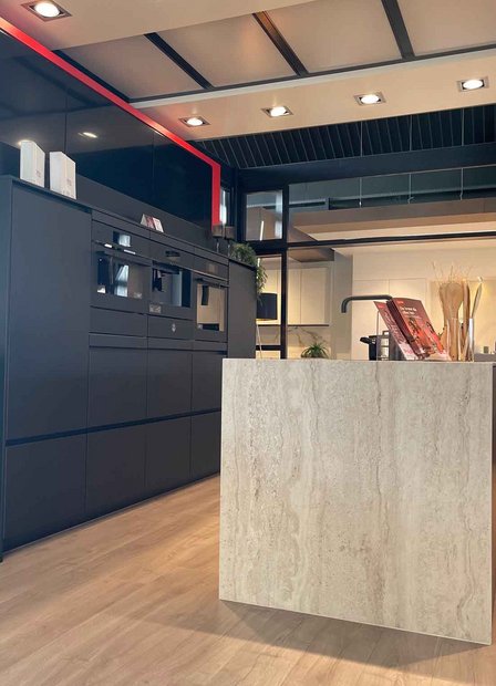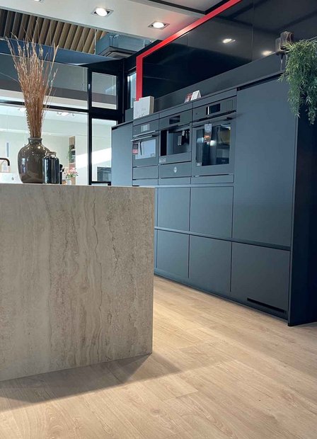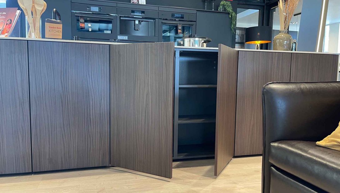 Fronten: Eiland : LYS Noten Milano, Wanden: LUXA Zwart Premium Black Mat