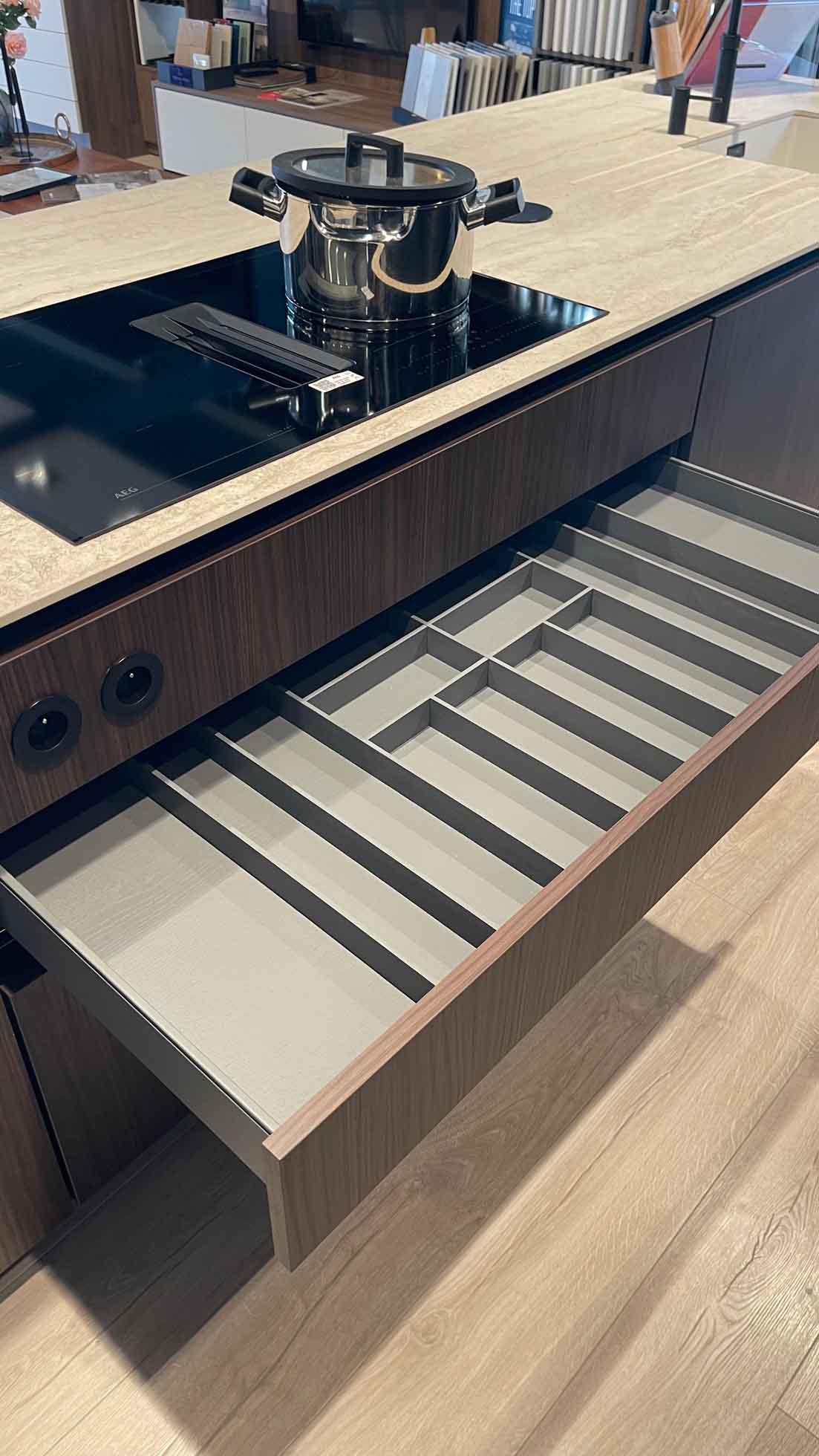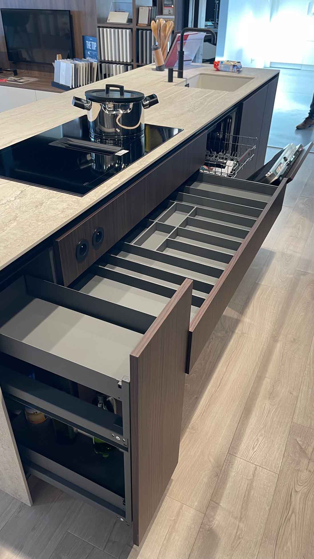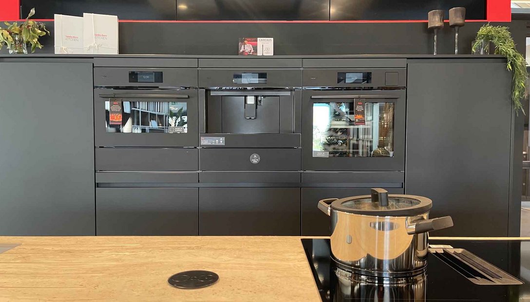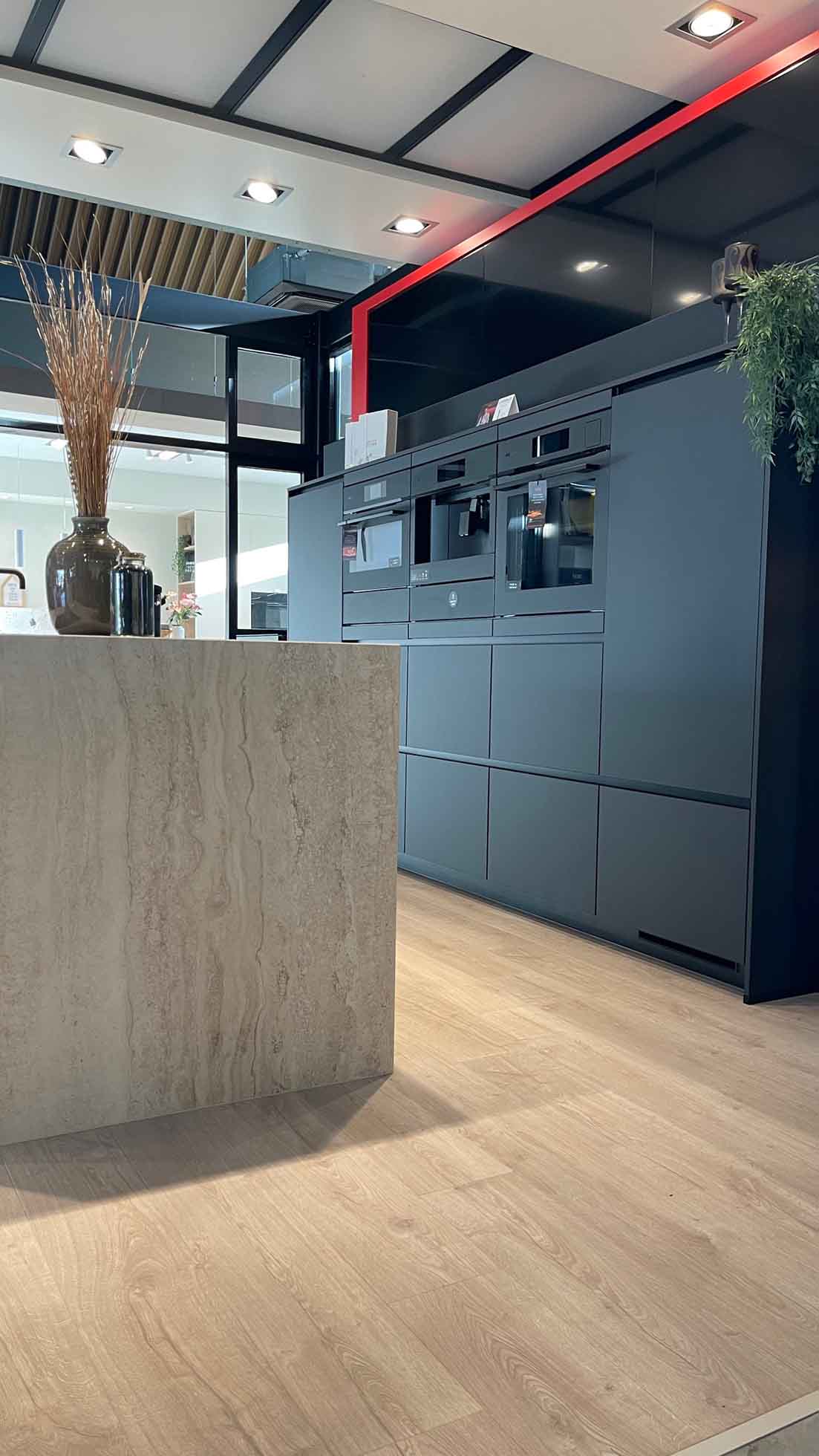 Fronten: Eiland : LYS Noten Milano, Wanden: LUXA Zwart Premium Black Mat