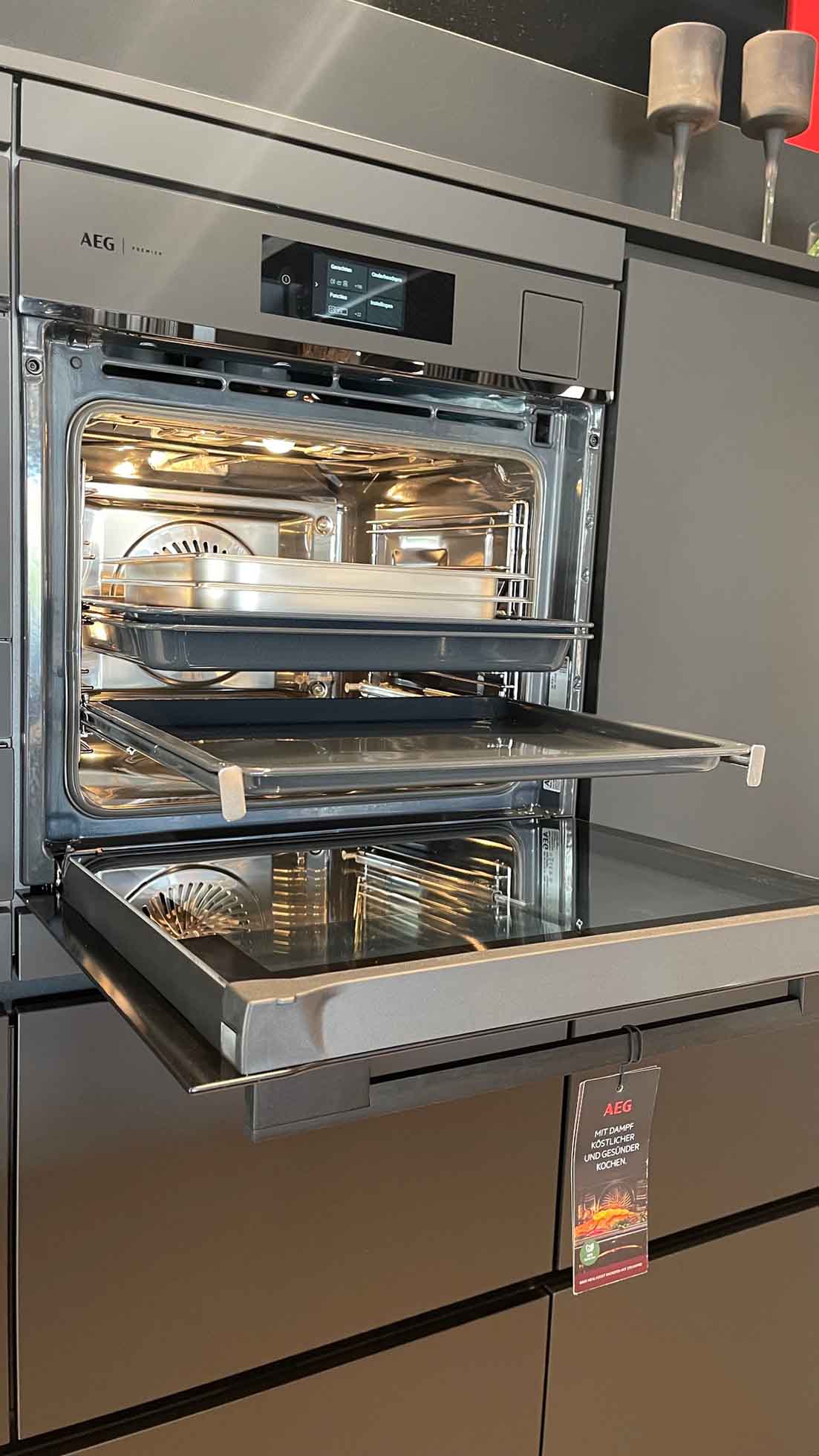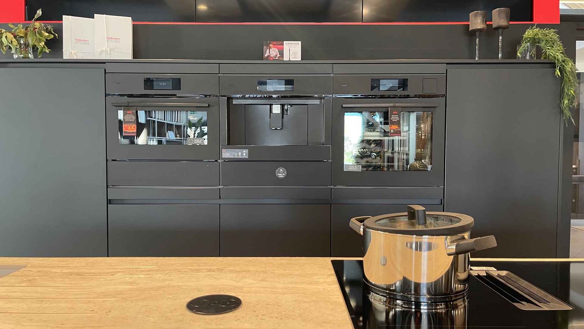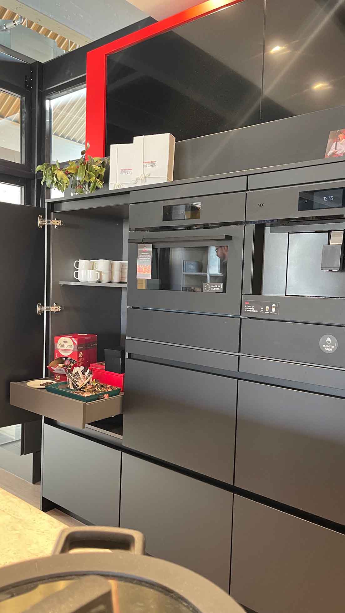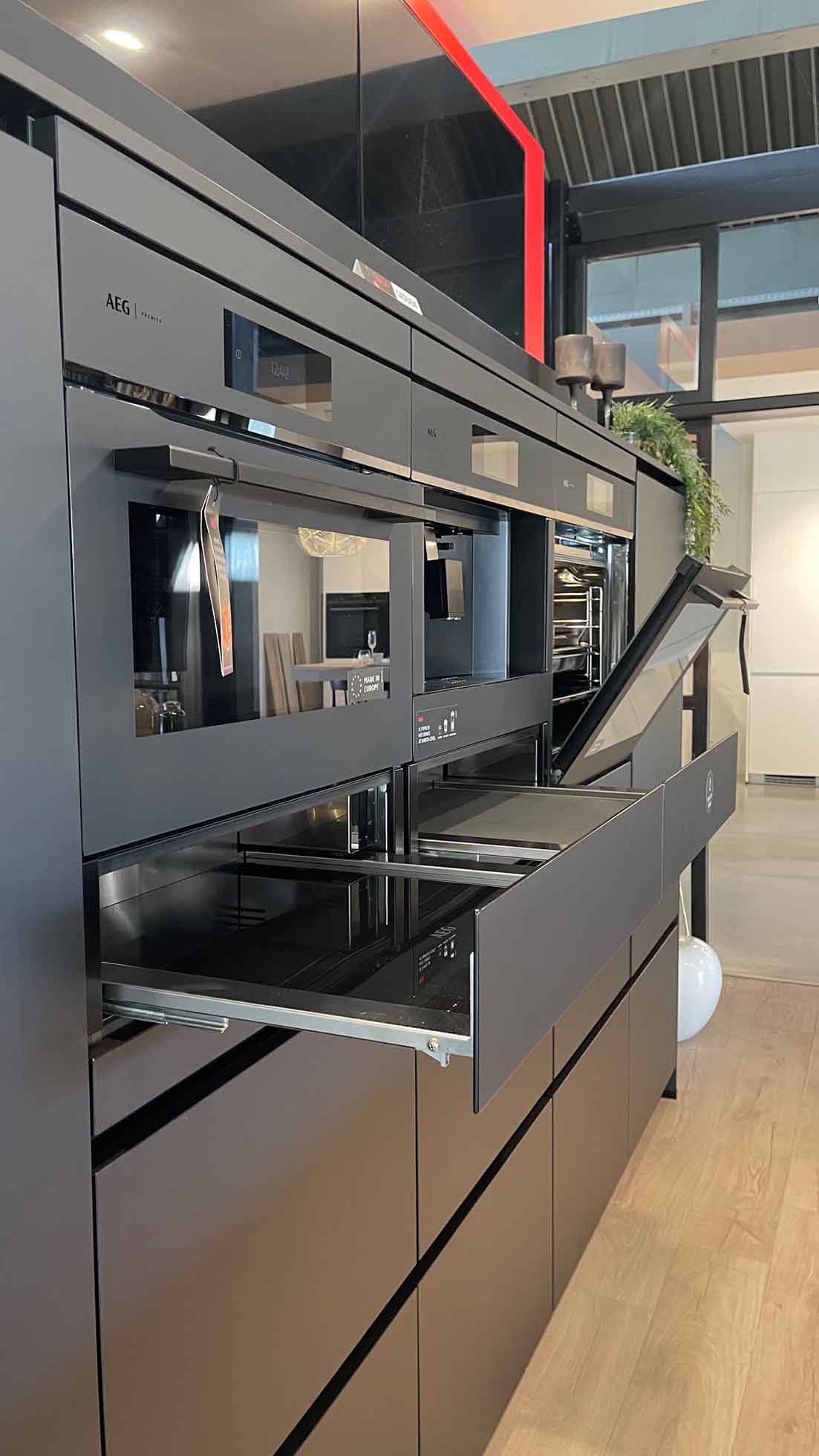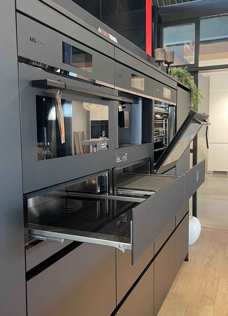 Elektrotoestellen: Oven: AEG CM7600T + AEG BS7900T, Kookplaat: AEG NCH84B03CZ, Dampkap: Geïntegreerd, Koelkast: AEG NSK5O88ES, Vaatwasser: AEG FSB53927Z/1, Koffiezet: AEG CK7100T